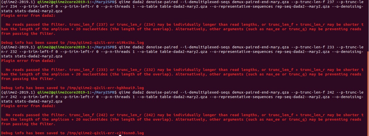Previously I ran dada2 with the sequences that have primers and barcodes but with other parameters (leaving a gap) . I don't know if having primers and barcodes in the sequence influences the command but I have a few reads too as an output.