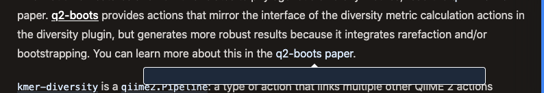 For example, I'm excited to be learning diversity analyses this week from the gut-to-soil tutorial, and some of the links to the papers for q2-boots and q2-kmerizer don't work as expected for me: