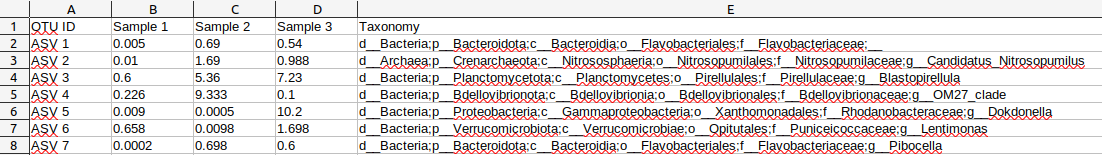 Then converted the BIOM file into a TSV file: