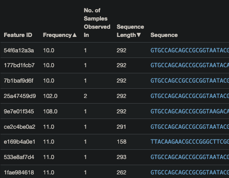 Additionally, I was really interested in sorting my view by Sequence Length. There is an arrow next to that column header, suggesting I should be able to sort by length, but nothing happens when I click it.
