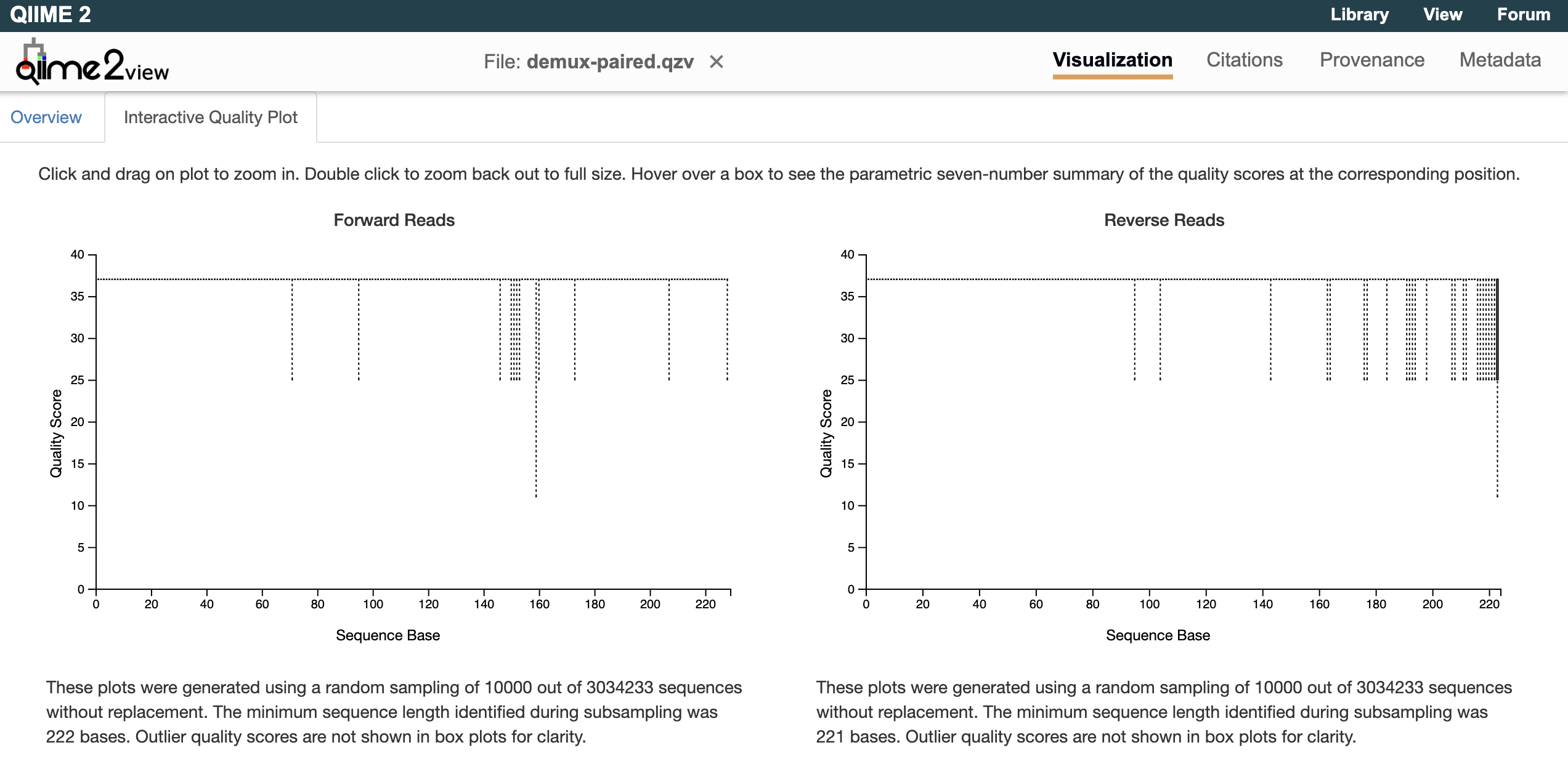 I’m a beginner in QIIME 2 and currently learning to run the analysis on my own and never been trained professionally in this analysis. Currently, I have paired-end sequencing data and I’m unsure at which position I should truncate my reads. I have 15 samples, and the expected amplicon size is 422 bp. The sequences have already been cleaned by trimming barcodes and primers. Could you please suggest the best forward and reverse truncation lengths so that I can proceed with the denoising step?