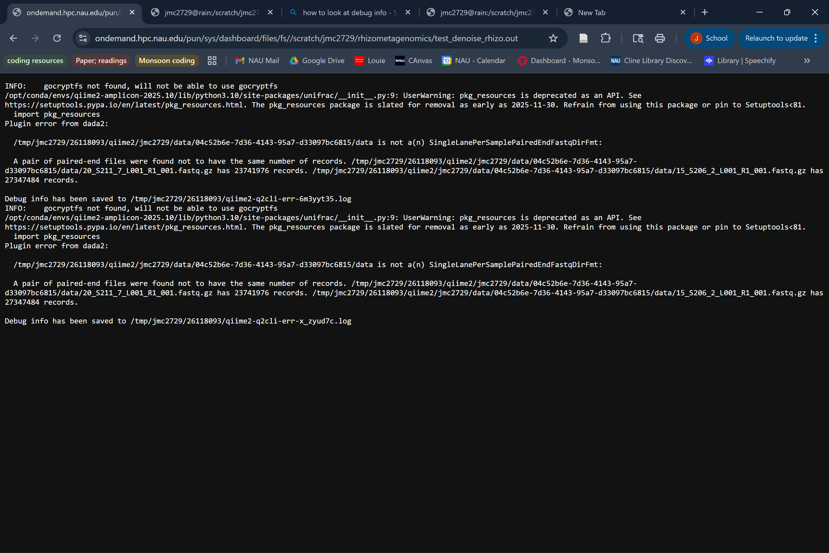 I have successfully demultiplexed this data however, as I started to denoise my data with dada2, I keep getting the error: A pair of paired-end files were found not to have the same number of records. I have tried restarting by repeating the demultiplex step, but I continuously get that same error with different file.