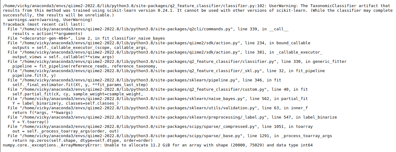 Hello it's me again. Now , I was traying to train my own classifier wih SILVA 132, but my terminal gave me an error and I don´t know wtha’s happen. I hope you can help me once again.