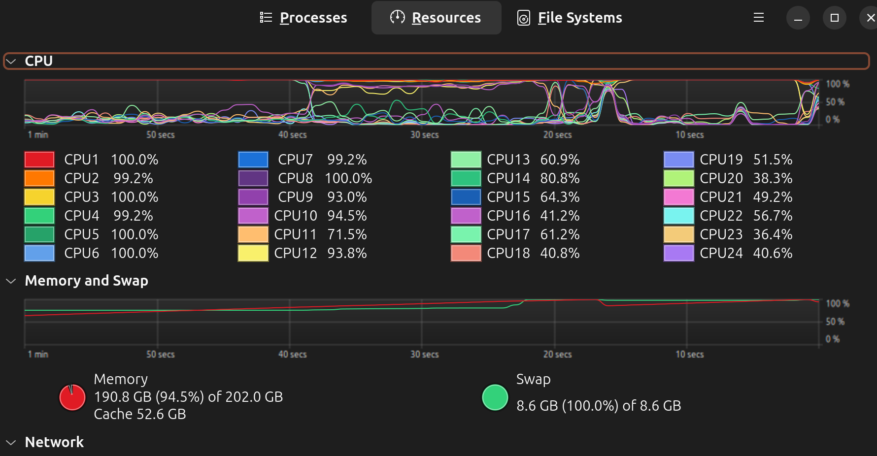 RAM: 192GB (100% utilized during crash)